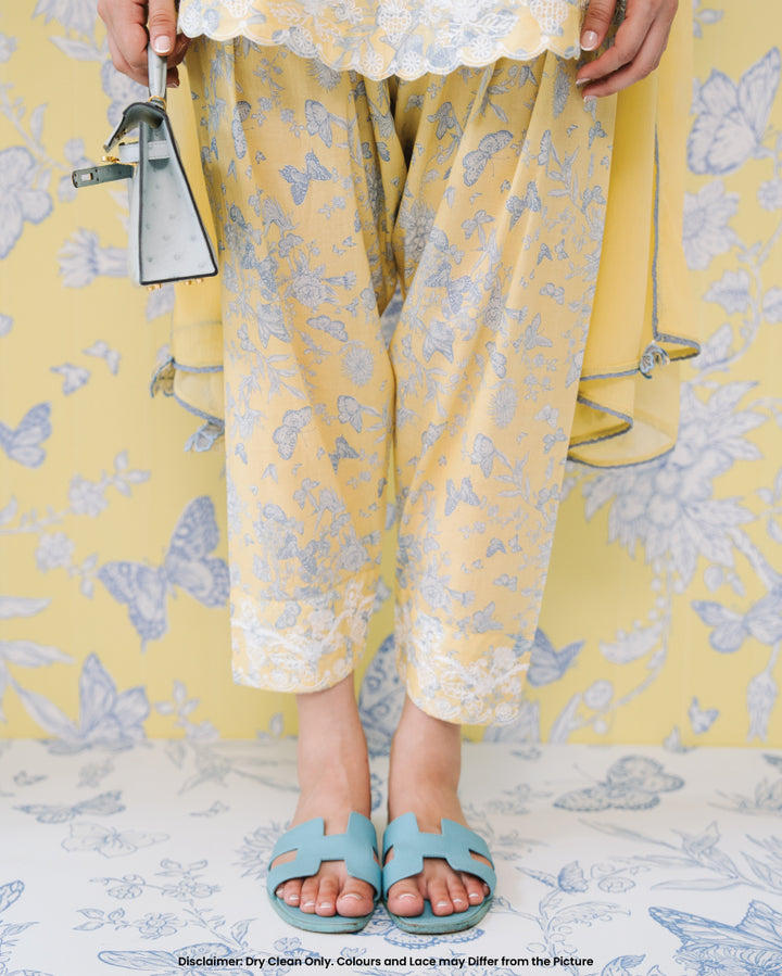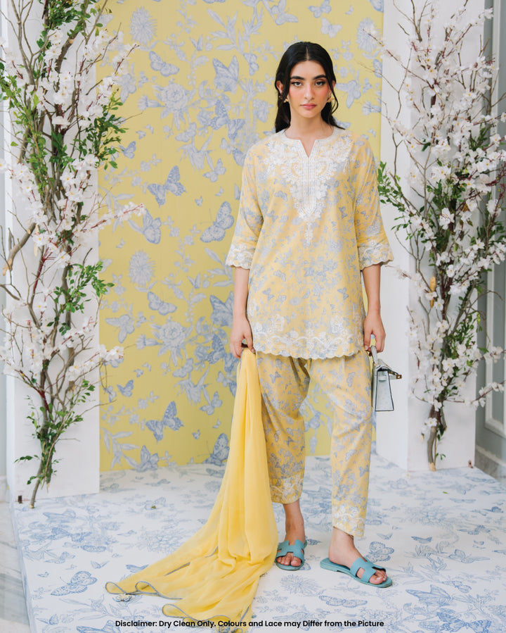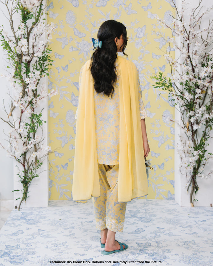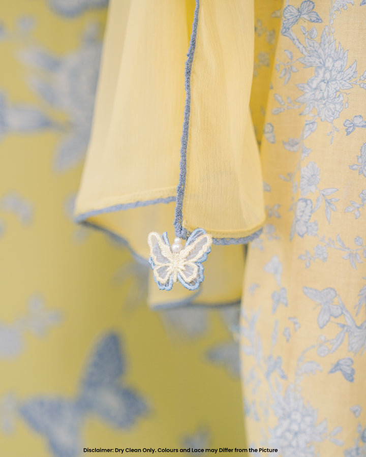 This dupatta features a soft butter yellow colour on beautiful and breezy chiffon, making it perfect to elevate the look. Complete with 3d butterfly embellishments and lace this dupatta is perfect for a quick lunch!