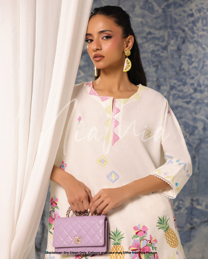Fresh and feminine, Marshmallow is crafted from soft linen with intricate embroidery all over — blending pastel tones with pineapple and floral motifs. Light yet cozy, it’s your go-to for effortless daytime dressing this fall.