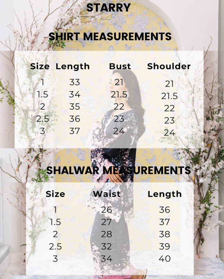 Please confer with the size chart before placing your order, and place your order with care, as we do not offer exchanges or returns.